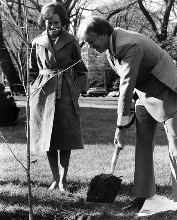 Over 40 different trees on the White House grounds have been planted by various presidents and first ladies over the years. For your arboreal delight, see the most recent addition of a littleleaf linden to the north grounds, in a spot that was originally designated by the Olmsted brothers in their landscape plan of 1935.
