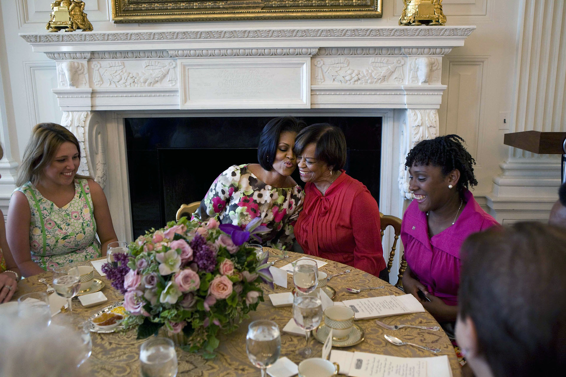 And raising our girls in the White House with my mom -- oh, not going to do this -- (laughter) -- is a beautiful experience. And the opportunity to have three generations living in the White House, it’s beautiful. And I’m pretty sure the President is happy about it, too. In this world there is so much going on, we know that we’re blessed, the Obamas.
