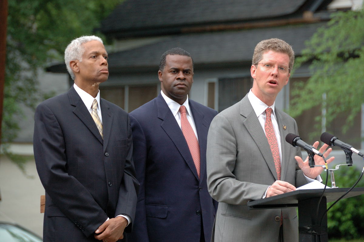 While in Atlanta, I also joined Congressman Hank Johnson and Atlanta Mayor Kasim Reed for a tour of the Pittsburgh Neighborhood, which has been severely impacted by foreclosures and blight. In recent years, it has had the highest foreclosure rate in the region and has been victimized by rampant mortgage fraud while suffering from high levels of vacancy and property abandonment. Many homes in the neighborhood stand vacant and boarded up. With $1.25 million in HUD’s Neighborhood Stabilization Program (NSP) funds, $3 million in loans from the Casey Foundation, and $145,000 in grants from Living Cities and JPMorgan Chase, the Pittsburgh Neighborhood will soon find relief and start to grow again.