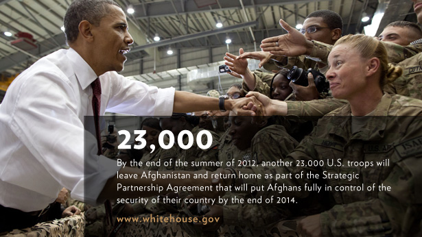 In his address to the American people after signing the agreement, President Obama announced that 23,000 U.S. troops will leave Afghanistan by the end of the summer, and by the end of 2014, Afghan forces will be fully responsible for the security of their country.
