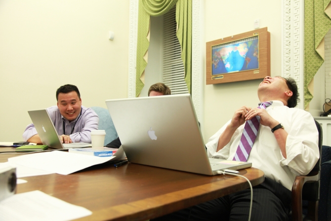 Chris Lu enjoys his special SOTU Asian American Pacific Islander Office Hour. [Photo by Joanna Zhang]