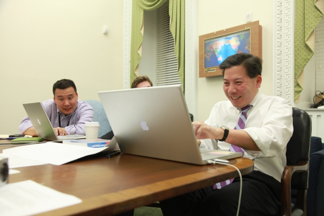 Chris Lu enjoys his special SOTU Asian American Pacific Islander Office Hour. [Photo by Joanna Zhang]