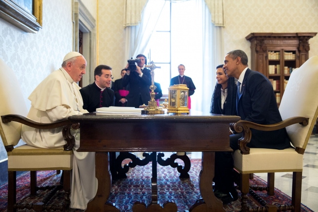 President Barack Obama meets with Pope Francis during a private audience in the Vatican, March 27, 2014. (Official White House Photo by Pete Souza)