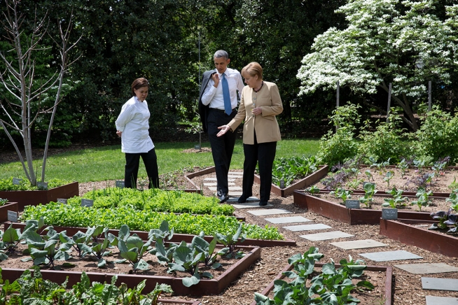 Photo: President Obama and Chancellor Angela Merkel Tour the White House Kitchen Garden