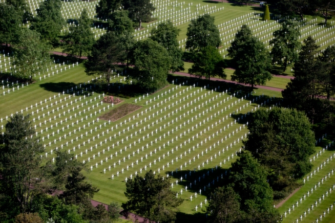 Aerial view of the Normandy American Cemetery and Memorial in Colleville-sur-Mer, France, June 6, 2014. (Official White House Photo by Pete Souza)