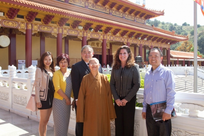 USCIS District Director Susan M Curda (second from right) with Paul Chang (third from left), Regional Advisor, White House Initiative on Asian American and Pacific Islanders and members of the community at the Hsi Lai Temple.