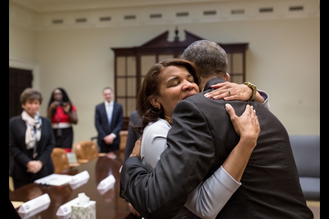 President Barack Obama hugs Kemba Smith during a greet with formerly incarcerated individuals who have received commutations, in the Roosevelt Room of the White House, March 30, 2016. Following that meeting the President took the group to lunch at a local restaurant. (Official White House Photo by Pete Souza)