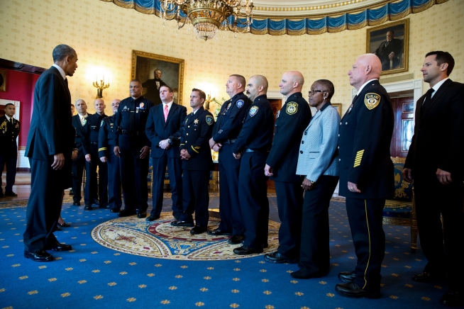 President Barack Obama addresses the Medal of Valor recipients in the Blue Room prior to the Medal of Valor ceremony in the East Room of the White House, May 16, 2016. (Official White House Photo by Pete Souza)