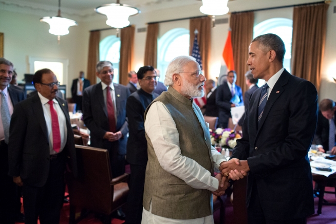 President Barack Obama and Prime Minister Narendra Modi of India talk after a working lunch in the Cabinet Room of the White House, June 7, 2016. (Official White House Photo by Pete Souza)