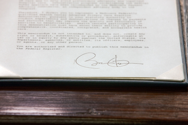 President Barack Obama's signature on the memorandum expanding funding for health clinics across the country. December 9, 2009. (Official White House Photo by Chuck Kennedy)