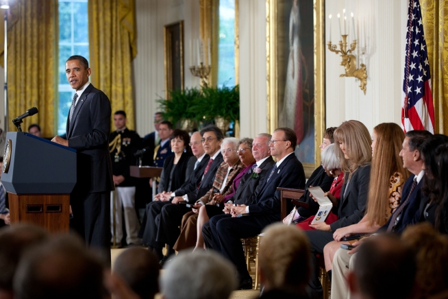 President Barack Obama delivers remarks at the 2011 Presidential Citizens Medal ceremony in the East Room of the White House, Oct. 20, 2011.
