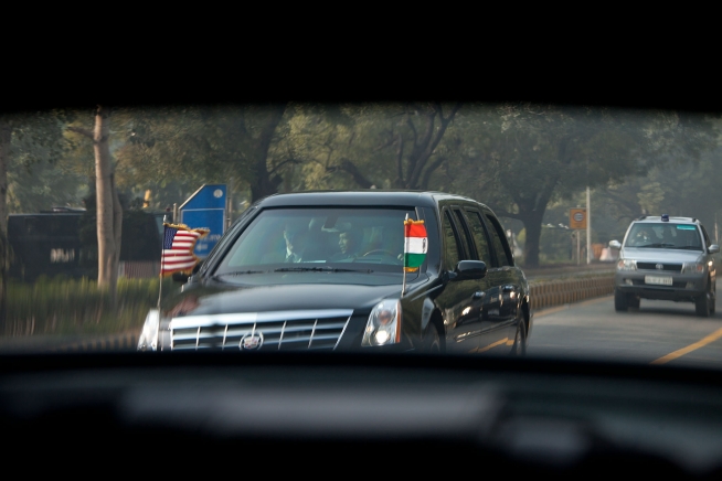 President Barack Obama's motorcade makes its way to the Rashtrapati Bhavan presidential palace in New Delhi, India, Nov. 8, 2010. (Official White House Photo by Pete Souza)