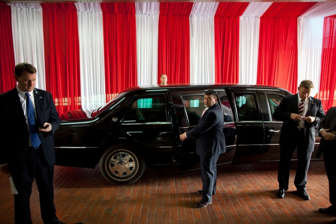 Staff members wait for President Barack Obama by the motorcade in preparation for departure from the Istiqlal Mosque in Jakarta, Indonesia, Nov. 10, 2010. (Official White House Photo by Pete Souza)