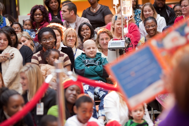 Kids, parents, and caregivers listen as First Lady Michelle Obama reads "The Night Before Christmas" to kids at the Children's National Medical Center in Washington, D.C., Dec. 13, 2010. (Official White House Photo by Samantha Appleton)