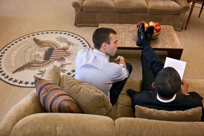 President Barack Obama works on his State of the Union Speech with Director of Speechwriting Jon Favreau in the Oval Office, Jan. 24, 2011. (Official White House Photo by Pete Souza)