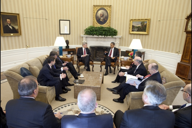 President Barack Obama holds a bilateral meeting with Prime Minister Stephen Harper of Canada in the Oval Office, Feb. 4, 2011. (Official White House Photo by Pete Souza)