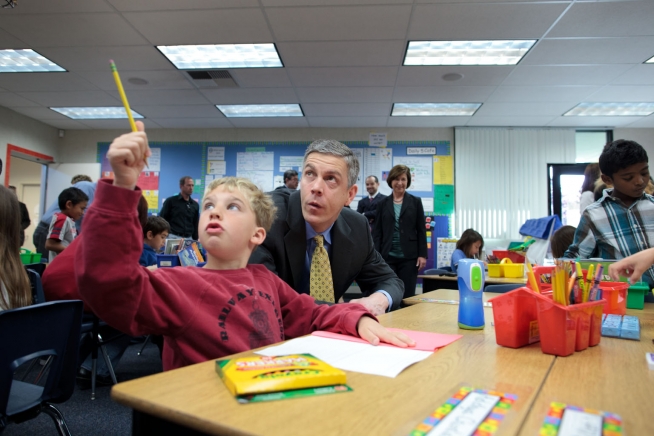 Secretary of Education Arne Duncan Sits With Eric Simmons