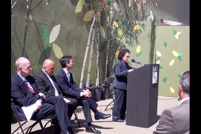 Chair Sutley joins LA Department of Water and Power General Manager Ron Nichols, LA District 1 City Council Member Ed Reyes, and LA District 13 City Council Member Eric Garcetti in announcing energy efficiency grants to local non-profit organizations.