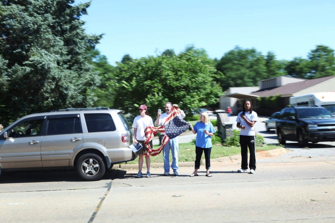 People gather along President Barack Obama's motorcade route in Tuscaloosa, Ala., April 29, 2011. (Official White House Photo by Samantha Appleton)