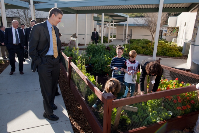 Secretary of Education Arne Duncan visits a vegetable garden tended by students and faculty at Shoal Creek Elementary School in San Diego, Calif., March 23, 2011. (Official White House Photo by Chuck Kennedy)