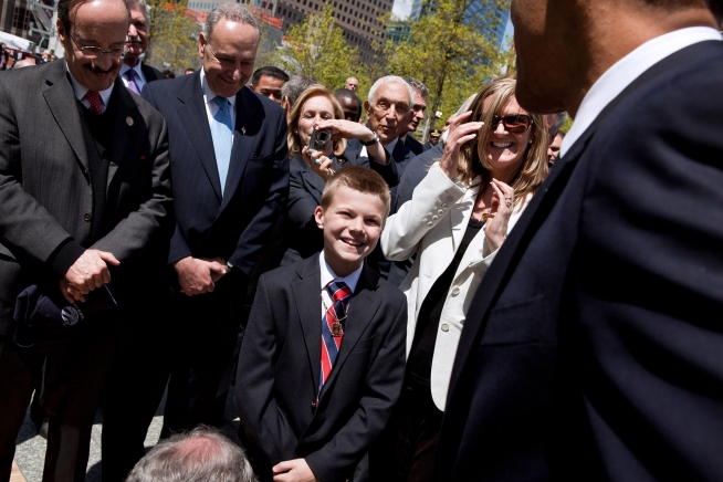 President Barack Obama greets 9/11 families and elected officials from the New York area at the site of the National September 11th Memorial and Museum at Ground Zero in New York, N.Y., May 5, 2011. (Official White House Photo by Pete Souza)