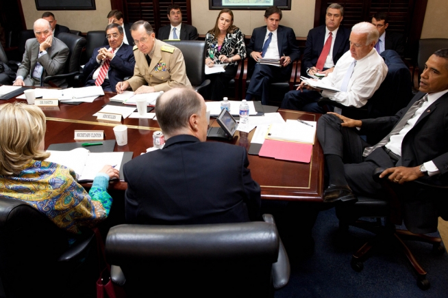 President Barack Obama, along with Vice President Joe Biden, meets with members of his national security team for a monthly meeting on Afghanistan in the Situation Room of the White House, June 6, 2011. (Official White House Photo by Pete Souza)