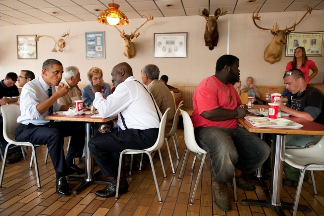 President Barack Obama has lunch with Toledo Mayor Michael Bell at Rudy’s Hot Dog in Toledo, Ohio, June 3, 2011. (Official White House Photo by Pete Souza)