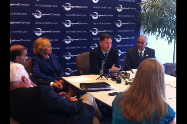 John Fernandez, U.S Assistant Secretary of Commerce for Economic Development and Department of Commerce's Economic Development Administration, meets with Sandy Baruah, President and CEO of the Detroit Regional Chamber.