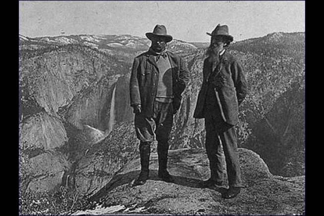 President Theodore Roosevelt exchanged the sizzle of a Washington summer for the ocean breezes of Sagamore Hill, his Oyster Bay home and forever transformed the nature of the presidential vacation. President Theodore Roosevelt and John Muir on Glacier Point, Yosemite Valley, California, 1903. (Photo from Underwood & Underwood, Library of Congress)