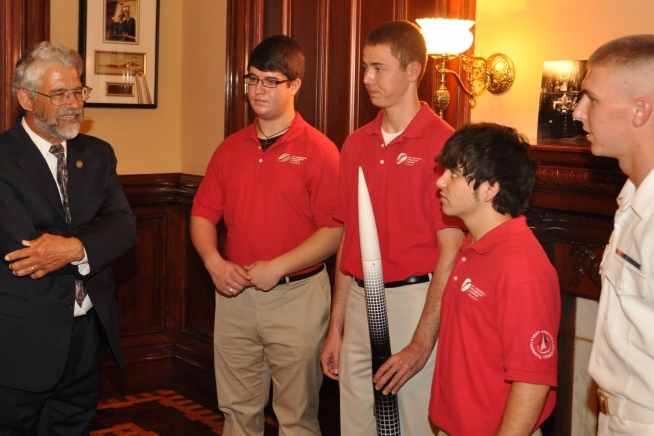 OSTP Director John P. Holdren meets with Landon Fisher, John Easum, Colt McNally, and Michael Gerritsen, the Team America Rocketry Challenge winners, on September 14, 2011. (Photo courtesy Patrick Carlson, AIA)