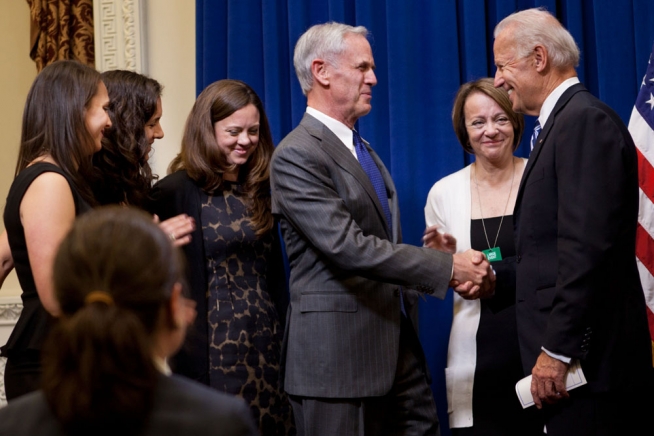 Vice President Joe Biden ceremonially swears in Secretary of Commerce John Bryson in room 430 of the Eisenhower Executive Office Building, in Washington, D.C., November 14, 2011. (Official White House Photo by David Lienemann)