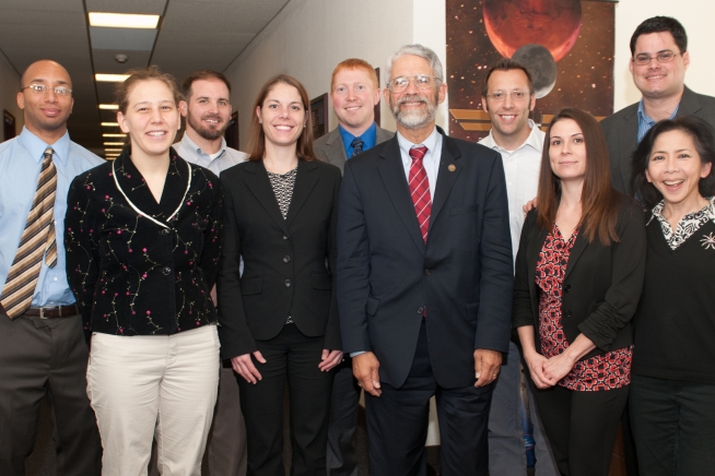 Dr. Holdren meets with NASA Glenn Research Center early- and mid-career engineers and scientists, November 18, 2011. (Photo courtesy NASA/Bridget Caswell)