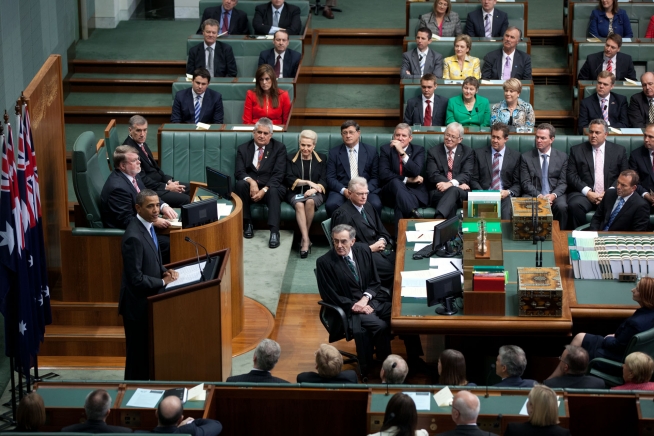 President Barack Obama addresses the Australian Parliament in the House of Representatives at Parliament House in Canberra, Australia, Nov.17, 2011. (Official White House Photo by Pete Souza)