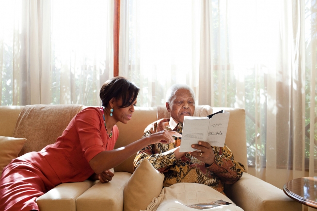 "Samantha Appleton, who has since left the White House, photographed the First Lady as she met with former President Nelson Mandela of South Africa at Mandela's home in Houghton, South Africa.