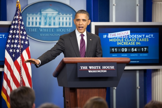 President Barack Obama delivers remarks on the payroll tax cut during a statement in the James S. Brady Press Briefing Room of the White House, Dec. 20, 2011.