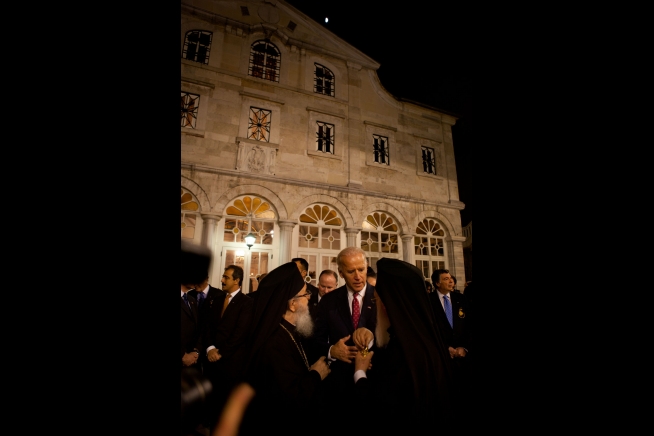 Vice President Joe Biden stands outside the Church of St. George with the Ecumenical Patriarch Bartholomew, right, and Archbishop Demtrios Trakatellis of America, left, at the Ecumenical Patriarchate in Istanbul, Turkey, Dec. 3, 2011.