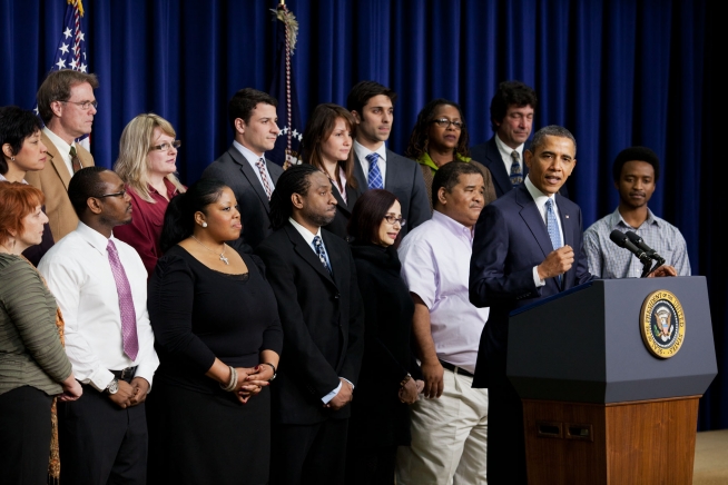 President Barack Obama delivers remarks during an event pushing Congress to extend the payroll tax cut and unemployment insurance through the end of the year, in the Eisenhower Executive Office Building South Court Auditorium, Feb. 14, 2012. The President was joined by Americans who have shared what $40 a paycheck means to them, and who would be affected if Congress doesn't act. (Official White House Photo by Pete Souza)