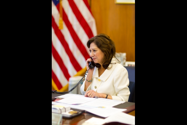 Secretary Solis listens to local officials on a Summer Jobs+ call, February 8, 2012. (Photo by Sean Moore, Department of Labor)
