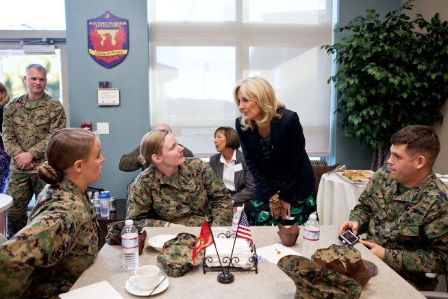 Dr. Jill Biden greets wounded warriors and their families at the Wounded Warrior Hope and Care Center at Camp Pendleton, Calif., Jan. 20, 2012. (Official White House Photo by David Lienemann)
