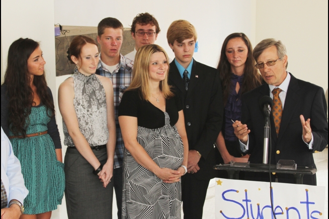 Earl Gohl meets with a group of local high school student leaders in Brownsville, Pennsylvania. (Photo Credit: Herald-Standard)