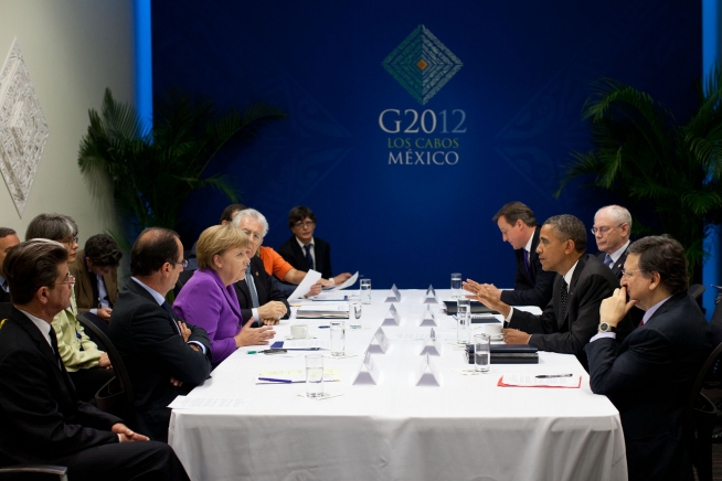 President Barack Obama participates in a Eurozone meeting at the Los Cabos Convention Center in Los Cabos, Mexico, June 19, 2012. (Official White House Photo by Pete Souza)