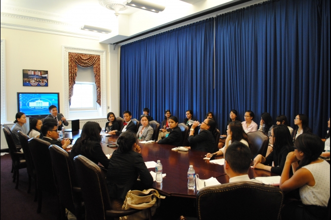 Eddie Lee, Youth Outreach Director for the White House Initiative on AAPIs, speaks to students about social media, July 6, 2012.