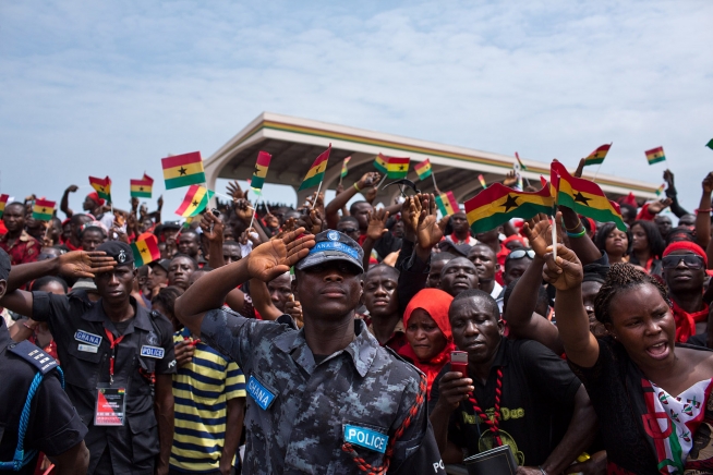 Ghanaians, dressed in black and red- the official colors of mourning, pay their respects to the late President John Atta Mills during a funeral procession at the Accra Independence Square in Accra, Ghana, Aug. 10, 2012. Secretary of State Hillary Rodham Clinton joined world leaders and their representatives at the state funeral for President Mills, who died July 24. (Official White House Photo by Lawrence Jackson)
