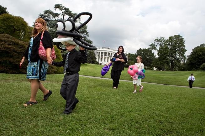 Kids’ State Dinner guests walk across the South Lawn for a tour the White House Kitchen Garden, Aug. 20, 2012. (Official White House Photo by Chuck Kennedy)
