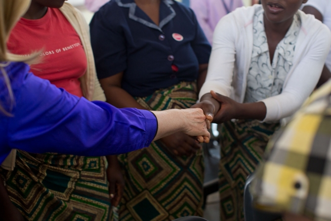 Secretary of State Hillary Rodham Clinton shakes hands with students following a Camp GLOW event at the Lilongwe Girls Secondary School in Lilongwe, Malawi, Aug. 5, 2012. (Official White House Photo by Lawrence Jackson)