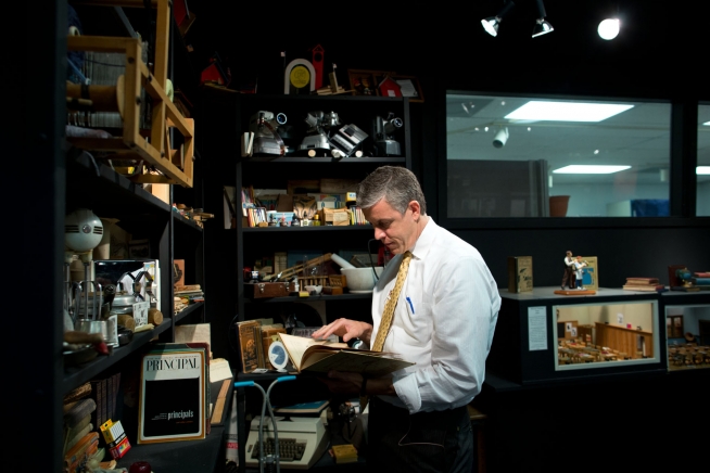 Education Secretary Arne Duncan looks at a copy of "Helpful Hints for the Rural Teacher" while visiting an exhibit in the National Teacher Hall of Fame at Emporia State University in Emporia, Kan., Sept. 18, 2012. (Official White House Photo by Chuck Kennedy)