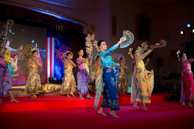 Dancers perform for President Barack Obama and Thai Prime Minister Yingluck Shinawatra during a dinner at the Government House in Bangkok, Thailand, Nov. 18, 2012. (Official White House Photo by Pete Souza)