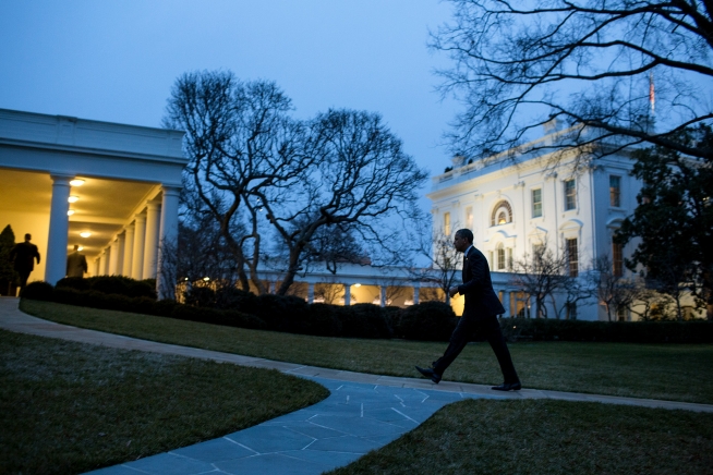 President Barack Obama returns to the White House following a visit to the Presidential Inaugural Committee headquarters in Washington, D.C., Jan. 17, 2013. (Official White House Photo by Pete Souza)
