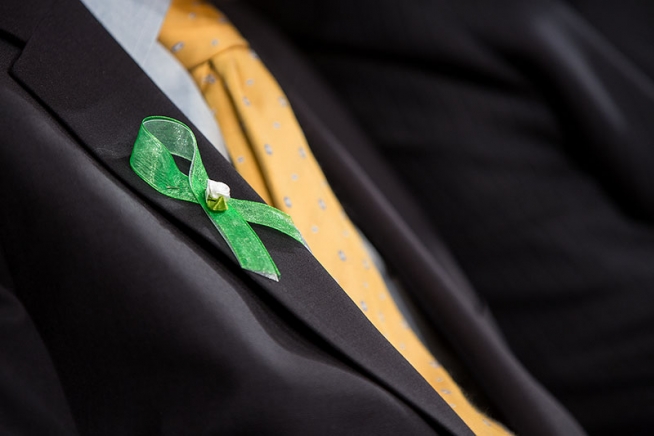 A Member of Congress wears a green ribbon at President Barack Obama's State of the Union address at the U.S. Capitol in Washington, D.C., Feb. 12, 2013. The ribbons were worn in honor of the victims of the Sandy Hook Elementary School shooting in Newtown, Conn. (Official White House Photo by Pete Souza)