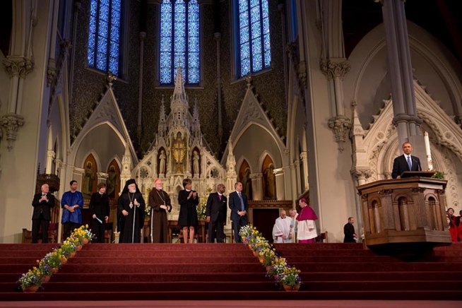 President Obama Gives Remarks at the Cathedral of the Holy Cross in Boston, Mass., April 18, 2013